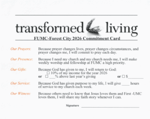 Toward that end, you will find something added in your worship bulletin this Sunday. It is something you may not have seen in quite a while. I’m told they were once routine here at FUMC but haven’t been utilized in a number of years. Even if you have seen one recently, it may look different than you may remember. It is a pledge card. So that you won’t be taken by surprise when you see it this Sunday, I am including a copy of the card in this week’s newsletter.